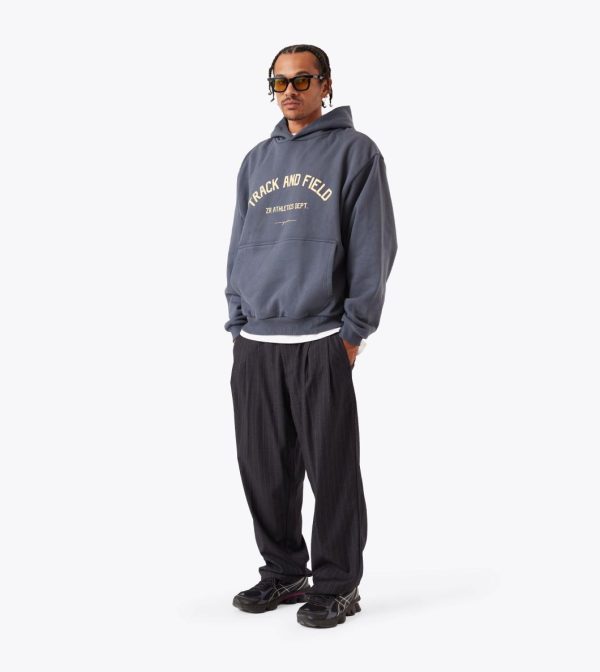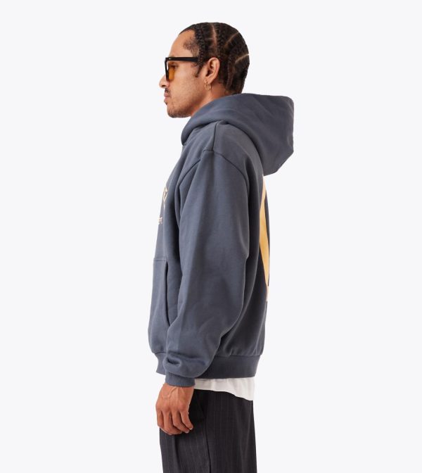 The ZANEROBE Ath. Box Hood in Anchor is built from a heavyweight cotton-poly blend, delivering a premium hand feel with long-lasting durability. Cut for a relaxed fit, it features high-density ribbed cuffs and hem for a structured finish, while the oversized hood keeps details minimal for a clean look. A bold plastisol print across the front and back, paired with the signature ‘X’ stitch, sharpens the slightly cropped silhouette with a modern look.
