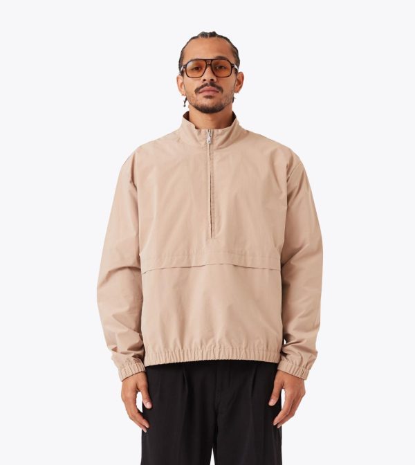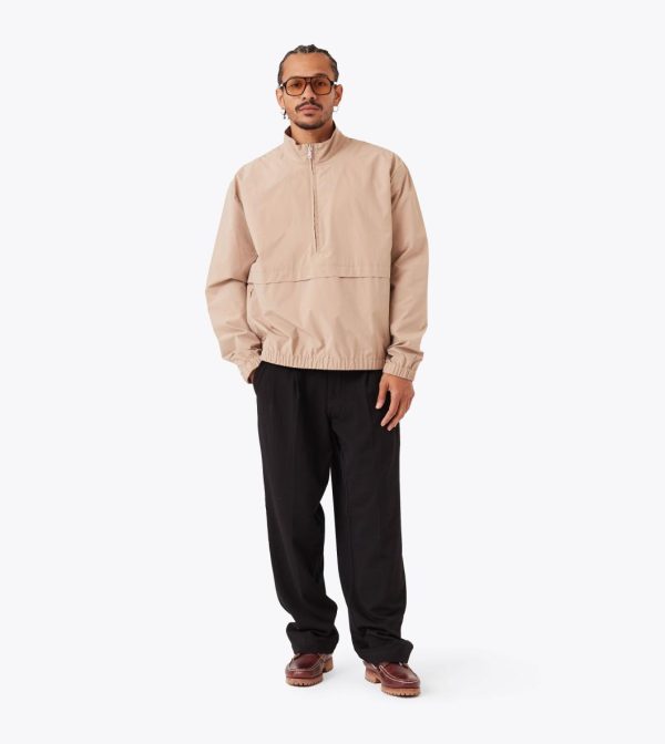 Upgrade your wardrobe with the ZANEROBE Ripstop Pullover in Taupe – a versatile piece that can instantly transform any outfit into a stylish statement. This jacket is made from a 100% Polyester micro ripstop fabric and features a water-resistant finish and a sleek zip thru mock neck with a half concealed zip opening for added style and functionality. Simply pair it with a pair of relaxed-fitting Box pants for a timeless look that never goes out of fashion.