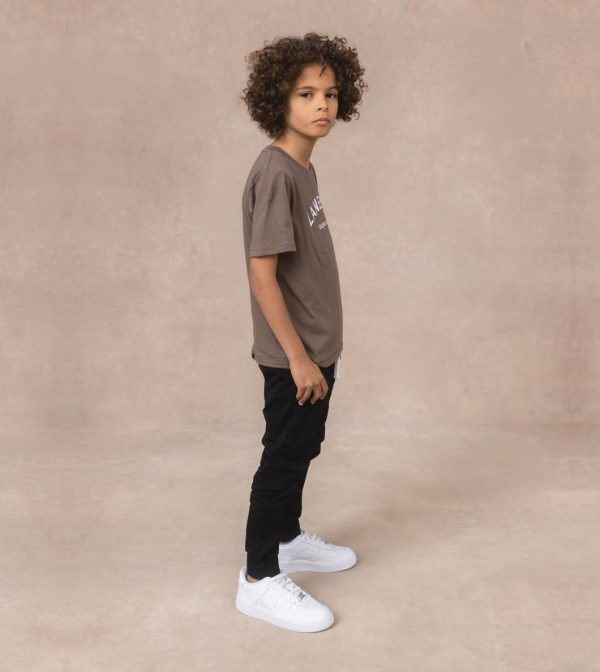 ‘LIL ZANE premium quality, organic tee with logo print. Sustainable, super-comfortable, ultra-durable construction – wear, play, wash, repeat with absolute confidence. Looks great paired with our Smallshot Orgo Jogger Black (featured) and Orgo Hoody GD Dk Grey.
