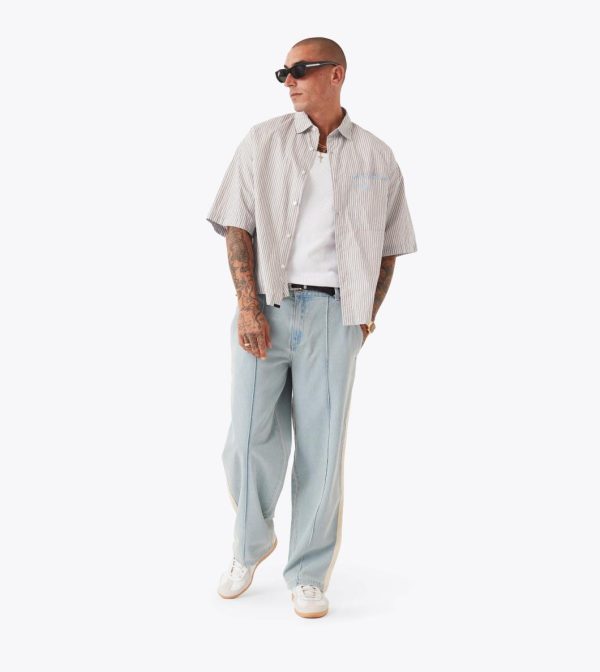 ZANEROBE Pants | Men Stitched Pintuck Denim Pant LT Blue