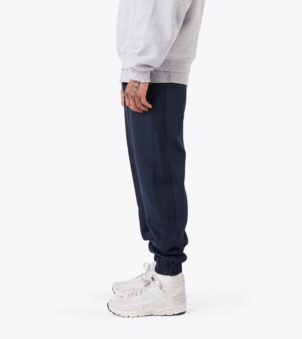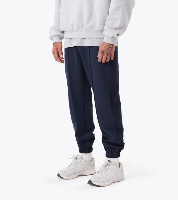 The ZANEROBE Sureshot Football Joggers in Indigo are crafted from high-quality scuba fabric and feature an elasticated waistband and pintucks for a clean look. The invisible zipper side pockets and tonal ZR emblem embroidery add a touch of luxury, while the encased elastic cuffs give a comfortable fit.