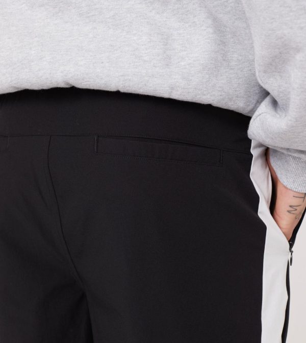 Made with a luxurious 90% Nylon and 10% Elastane tech fabrication, the Sureshot Tech Jogger 2.0 in Black offers a water-resistant finish for all weather wear. The contrast side panel and knee darts add a touch of sophistication, while the invisible zipper side entry pockets and ZR emblem embroidery provide practicality.