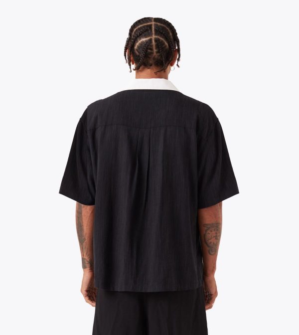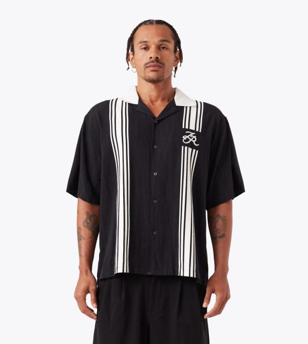 The ZANEROBE Bowling SS Shirt in Black/White reinterprets a timeless style with a contemporary edge. Made from a breathable rayon-cotton slub blend, it delivers a subtly textured feel and relaxed drape. A bold vintage-inspired print takes center stage, while the chunky chainstitch embroidered ZR emblem adds a distinctive finishing touch. Designed for versatility, this piece effortlessly elevates any look.