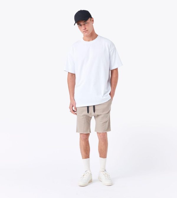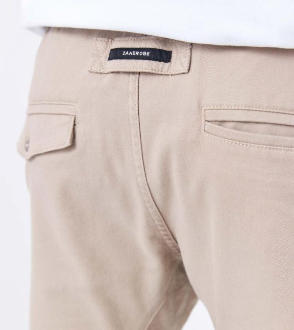The ZANEROBE Sureshot Short in Sandstone – a relaxed stretch cotton twill chino short, comfortable and super easy to wear. We wear with our best selling basic Flintlock Tee.