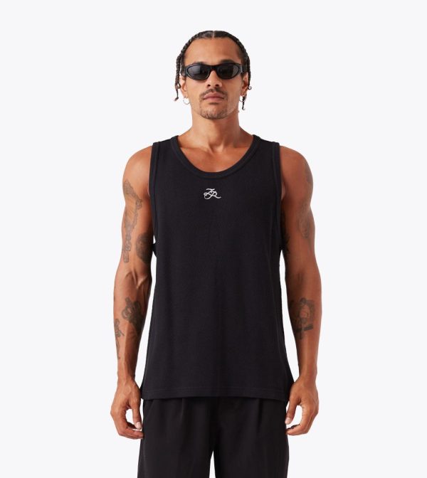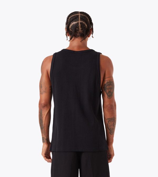 The ZANEROBE Waffle Tank in Black is a versatile warm-weather piece, combining comfort with understated style. Crafted from 100% cotton waffle fabric, it delivers a breathable, textured feel with a premium touch. Designed with a slightly off-the-body fit, it offers a relaxed yet polished silhouette, while self-fabric binds at the neck and armholes enhance its clean finish. Whether layered or worn solo, this tank is an easy choice for laid-back days.